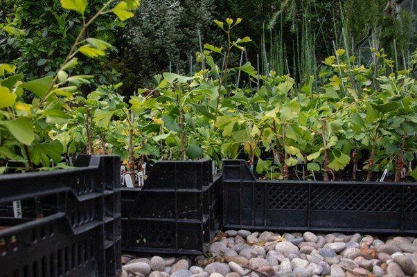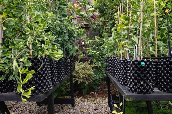 Figure 20. View of ginkgo’s growing in 'Air-Pots' - "The majority of the plants are currently being grown in special containers, Air-Pots. This is to ensure that they develop healthy root systems in readiness for planting in the future." https://www.npcginkgo.org/