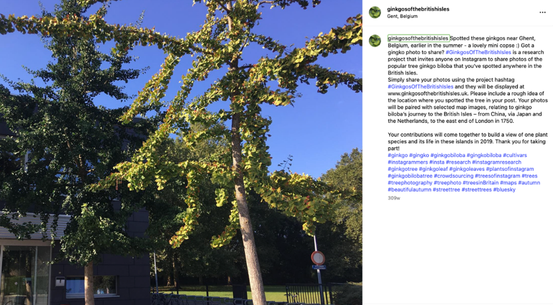 Figure 2. The first Instagram post of #ginkgosofthebritishisles