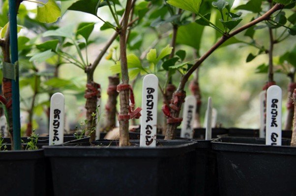 Figure 27. Close-up of grafted stems and labels of cultivar 'Beijing Gold'