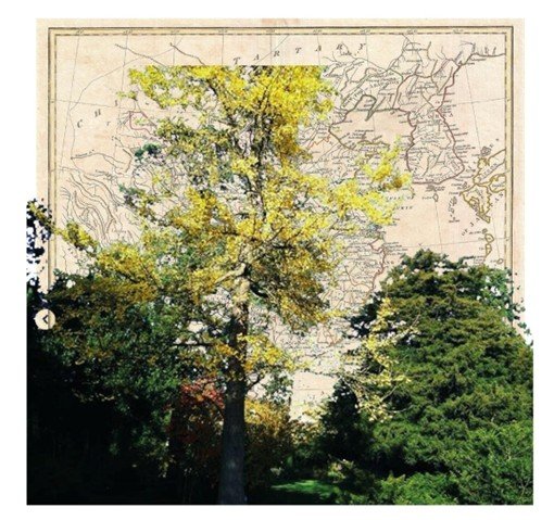 Contributed photos were paired with map images of the species’ places of origin: Japan, where the tree was encountered by the German surgeon and traveller Engelbert Kaempfer in 1692; China, where the species is native; Leiden, where ginkgo arrived in Europe from Japan; and Mile End, London, where the first seedling in Britain was raised in 1750. Documentary photography was also carried out at the National Plant Collection of Ginkgo biloba and cultivars, held by Tony Davies in Worcestershire. I now think of these photographs and collages as forming an idiosyncratic atlas, intertwining ‘the ginkgo’ as the subject with our ways of fetishizing and loving it.