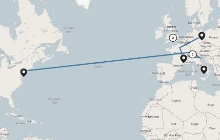 The route of Ruth Rogoff (née Biron). To view the Ruth’s story and the Collection associated with this route, click here.