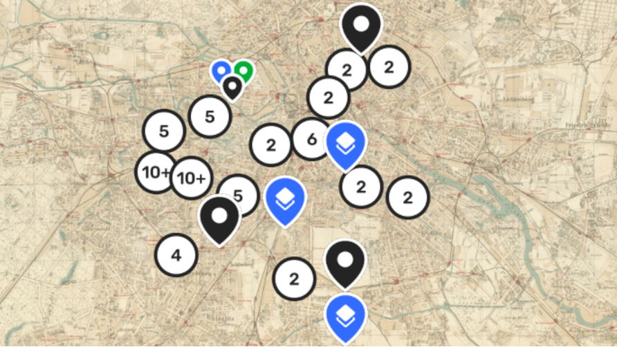 Records from the Collection visualised on the historic Berlin 1940 map overlay. To view the map and use the overlay click here.