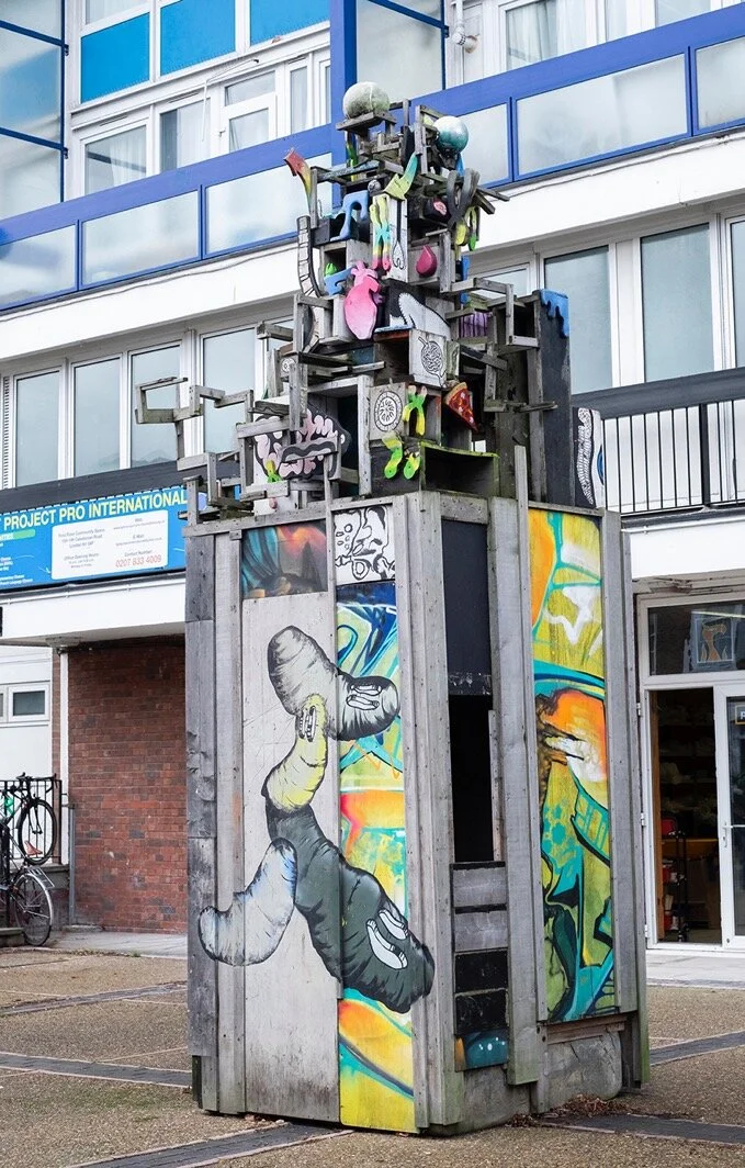 I wonder at her optimism in what appears to be such a sanitised space and doubt that this piece of the city truly belongs us. I think back with to the slightly ramshackle sculpture on Caledonian Road. Whoever made that were ‘active within it.’
