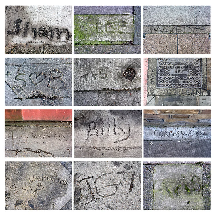 Writing in wet cement, graffiti and chalk drawings are low-level acts of intervention between people and their built environment. They add both depth and richness to the space. It is a form of ownership and a message to the world saying: